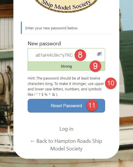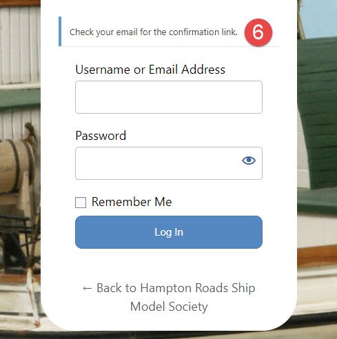 Note: Only members of the Hampton Roads Ship Model Society may be registered. All areas of the website not restricted to members are visible without logging in, so there is no reason for visitors to be registered. - Once registered by the webmaster, you should receive an email like the one below. If you do not see it in your inbox, check your spam/junk folder. Click on the first link and then follow the instructions for setting your password.