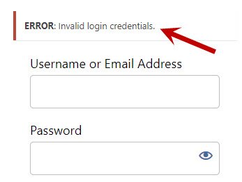 If your username/email or your password were incorrect, you will see the message shown below.