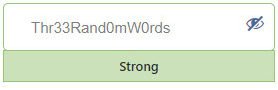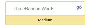 - Medium – A common way to increase password strength is to use 3 random words. But the words in the example below are not actually random – they form a logical phrase. A better example might be OrbitDeskPeace.