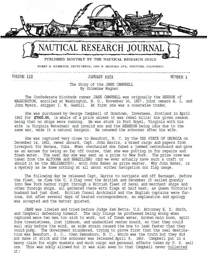 NRJ V3 N1 Nautical Research JournalVol. 3 No. 1Nautical Research Guild, Inc., January 1951History (Ships) | Instructional | Ship Modelling